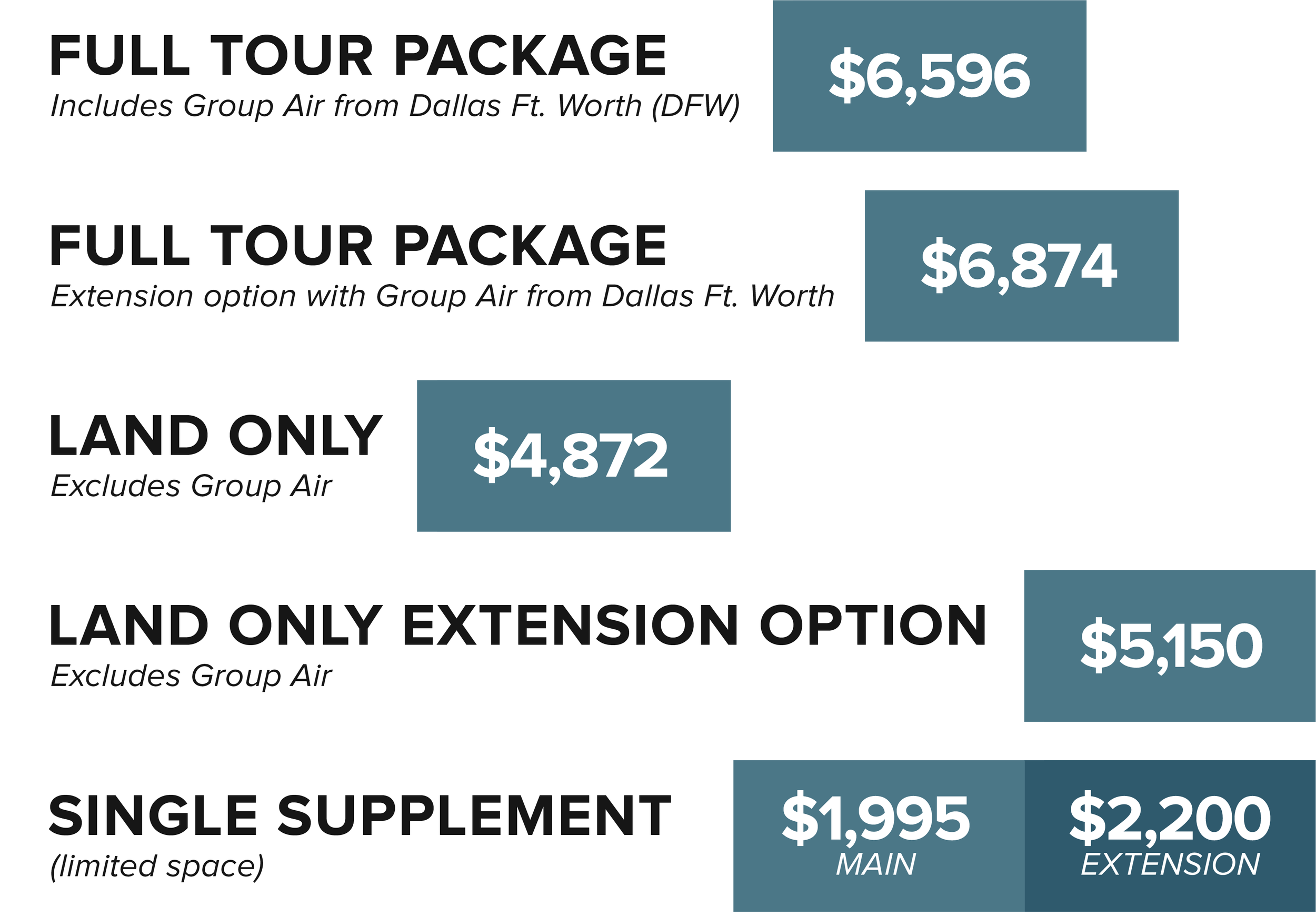 *Prices are subject to change if airline fuel surcharges or taxes are increased.